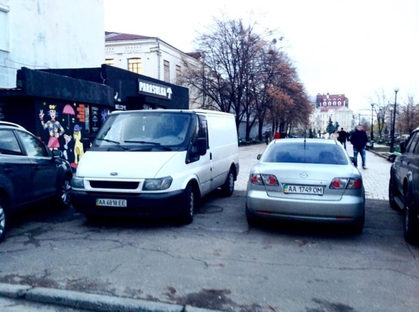 "АА6818ЕЕ сначала припарковался на кирпичной аллее, ведущей к кинотеатру "Жовтень", а после замечания закрыл своим четырехколесным "чертопхаем" единственный выход с этой же аллеи", - сообщил киевлянин.