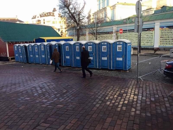 В Киеве после поднятого скандала в соцсетях демонтировали туалеты, которые ранее установили напротив Стены памяти по погибшим воинам АТО возле Михайловского монастыря.
