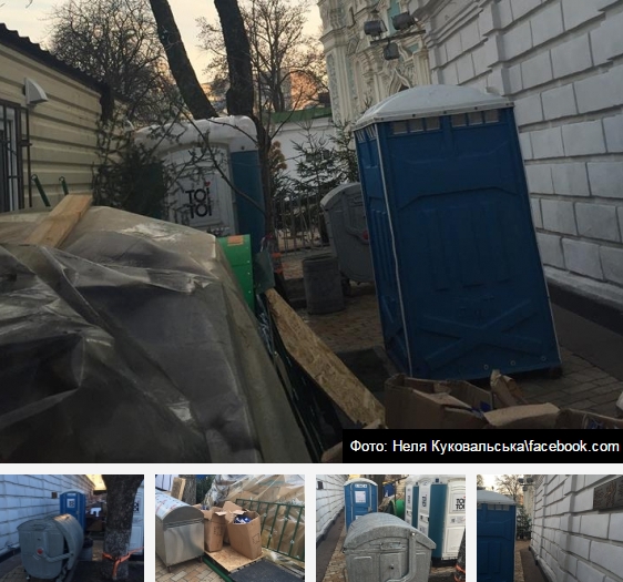 "Уважаемые киевляне! Обращаюсь к вам и к представителям средств массовой информации. Все, что вы видите на фотографиях, это "Новый год между двумя площадями", а именно - у стен Софии. Святыня украиинского народа в туалетах, свалках, контейнерах! Бизнес господина Добруцкого процветает именно таким образом. Прошу помощи вас, неравнодушных к сохранению национального культурного достояния", - говорится в сообщении.