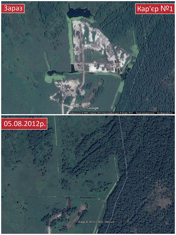 Автомайдановцы приводят снимки этих мест до разработок. Фото взяты с Google Earth.