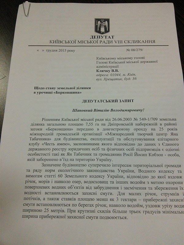 Арендатором является элитарный клуб «Честь имею», основателями которого являются именно Табачник и Кобзон. Последний, как известно, объявлен в Украине персоной нон-грата.