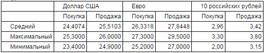 Во вторник курс продажи наличного доллара в обменных пунктах киевских банков по состоянию на 9:30 понизился по сравнению с 11 января на 2,13 коп. до 25,5103 UAH/USD, курс покупки - на 3,12 коп. до 24,4074 UAH/USD. Об этом сообщает BIN.ua.