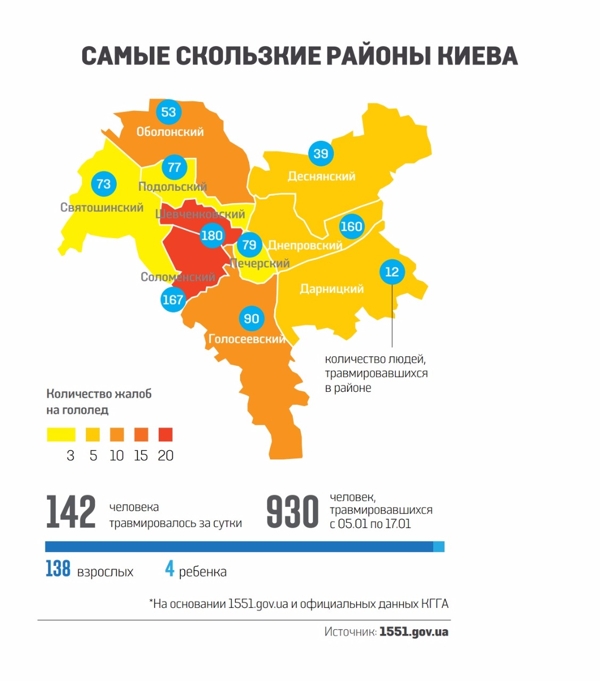 «В основном люди поступают с травмами верхних конечностей, так как, поскользнувшись, пытаются обезопасить себя, падая на руки. Реже бывают травмы ног, в основном это растяжения сухожилий. Из последнего: мужчина выходил из автомобиля и встал в обледенелый сугроб. На льду ногу развернуло так, что она оказалась под кузовом авто. В результате вывих голеностопа. Так как дело было неподалеку от больницы, он доковылял», — говорит «Вестям» врач-травматолог киевской городской больницы №7.