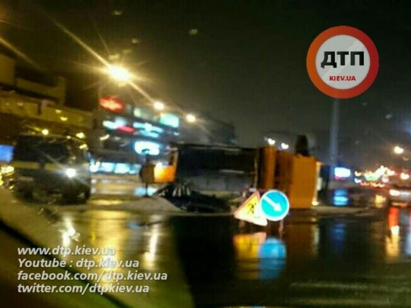 ДТП с участием грузовика снегоочистителя произошло в Киеве на площади Победы сегодня ночью, 22.01.2016 около 01:00.