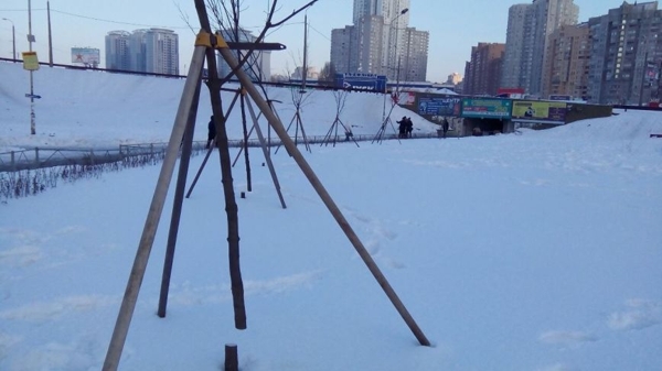 На Осокорках вандалы уничтожили сквер на месте скандальной застройки