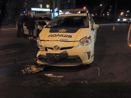 Ночью на Печерске полицейские разбили машину (ФОТО)