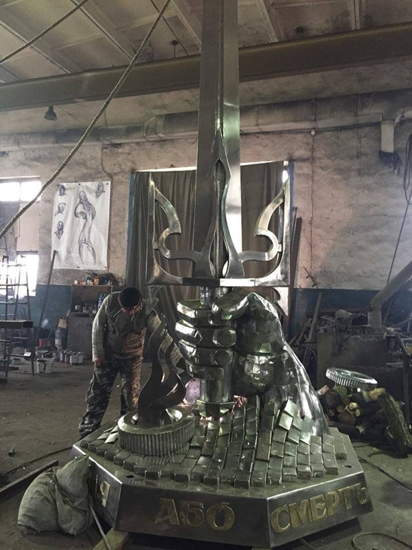 В Киеве может появиться патриотичный памятник в виде руки с мечом-трезубцем. Стоимость такого памятника около 300 тысяч гривен, изготовлен он из нержавеющей стали и имеет размеры 2Х2Х6 метров.