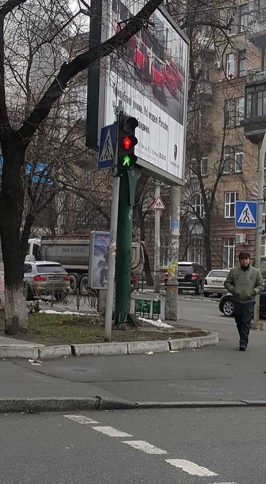 Киевляне выложили в соцсетях фотографию светофора в столице, который одновременно светится красным и зеленым светом. "Светофор свободных людей. Хочешь – иди, не хочешь – не иди", – прокомментировал фотографию ее автор Артем Волхонский.