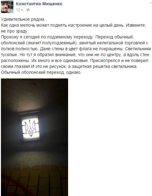 "Прохожу я по подземному переходу. Переход обычный, оболонский (значит полуподземный), занятый нелегальной торговлей с лотков полностью", - рассказал Мищенко.