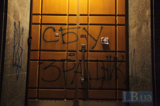 На улице Владимирской разрисовали двери СБУ (ФОТО)