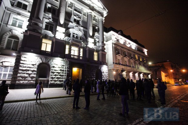 Сегодня ночью в Киеве разрисовали двери главного здания Службы безопасности Украины на Владимирской улице. Это произошло после того, как сотрудники спецслужбы задержали главу гражданского корпуса "Азов-Крым" Станислава Краснова.