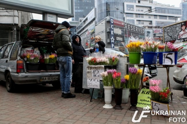 Столицу заполонили торговцы цветами. В канун Женского праздника они буквально на каждом углу. В переходах и на улицах витают ароматы цветов.