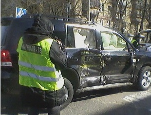 В Киеве на перекрестке улиц Ивана Кудри и Филатова недалеко от станции метро "Лыбедская" столкнулись маршрутка с пассажирами №546 (84) "Теремки" – "Дружбы народов" и черный внедорожник Toyota Land Cruiser.