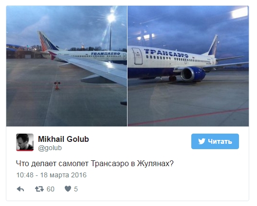 "Что делает самолет "Трансаэро" в Жулянах?", - спросил у фолловеров Голуб.