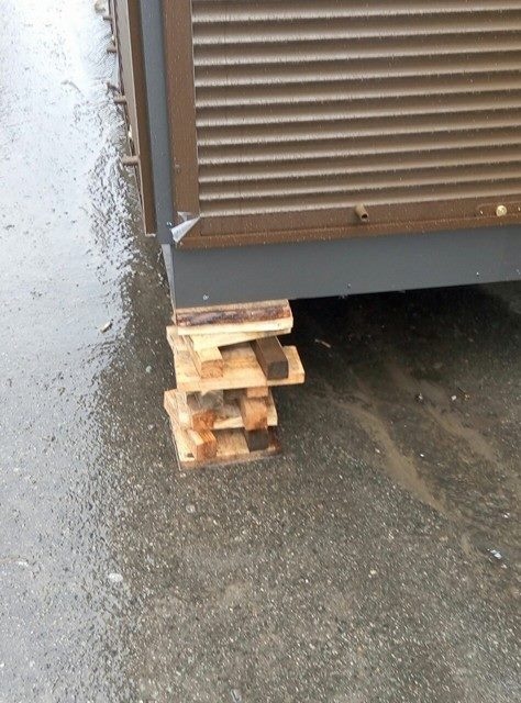 Столичные автомобилисты шутят, что ларек установлен на "динамическую адаптивную деревянную настраиваемую подвеску": в качестве опоры под одним из углов МАФа установлена стопка деревянных брусков.