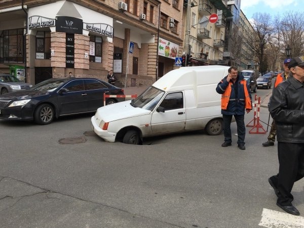 В Шевченковском районе Киева под автомобилем на дороге провалился асфальт. Об этом сообщается в Twitter "Авто Киев".