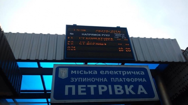 Информационное табло, которое отображает время прибытия поезда, установили на станции киевской городской электрички "Петровка".