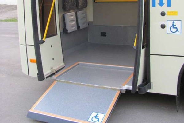На дверях автобуса появились изображения велосипеда, детской и инвалидной коляски. Таким образом эти категории пассажиров мотивируют пользоваться маршрутными такси, хотя, как правило, они для этого не приспособлены. Стоит отметить, что в подобных маршрутках есть специальные откидные пандусы, которые можно использовать для заезда коляски.