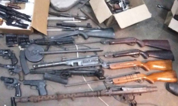 "Сотрудники департамента уголовной разведки МВД Украины (ранее ГУБОП) обнаружили в рабочем цехе одного из столичных заводов более 40 единиц нарезного оружия (пистолеты, снайперские винтовки, пулеметы и автоматы), 20 гранат Ф1 и 3 тыс. патронов различного калибра и другое огнестрельное оружие", - говорится в сообщении МВД.