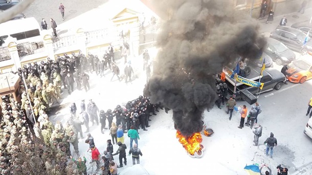 «Автомайданы Украины просили встречи с президентом Украины по ряду вопросов вокруг назначений руководителями полиции людей, которые откровенно поддерживают сепаратизм. После более получаса ожидания к активистам никто не вышел, на что активисты зажгли шины. В ход пошли работники неизвестно спецподразделения, которые избили активистов», — написал один из активистов, подписавшийся Сергеем Абрамом.
