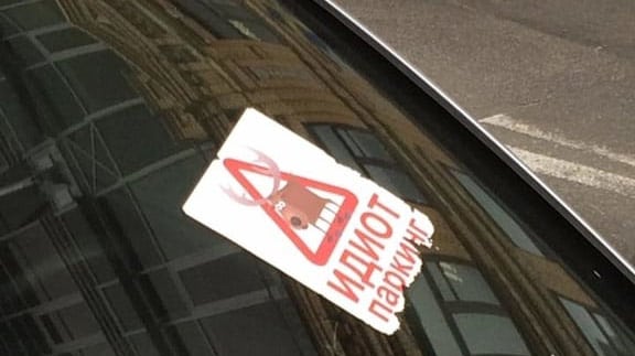 В центре Киева неправильно припаркованные автомобили массово обклеили наклейками с изображением лося.