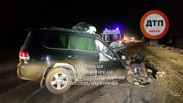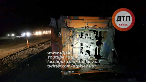 Так, Toyota Land Cruiser на высокой скорости врезалась в мусоровоз МАН, который после поворота налево двигался в сторону Киева.
