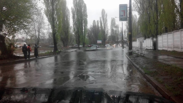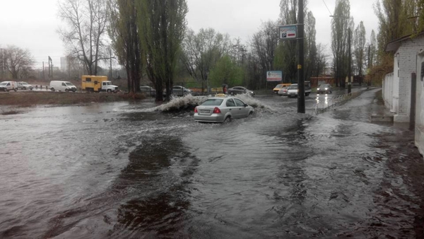 Дожди в Киеве привели к подтоплению дорог в некоторых районах города. Об этом сказано в сообщении группы «Наш Киев» на странице в Facebook.