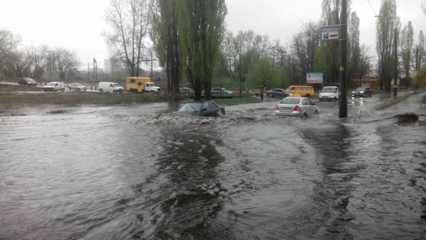 «Киев, Левый берег, ул. Фанерная. Разлилась речушка Дарница, на дороге метр воды, машины поднимают волны, не перейти», - сказано в сообщении. Также опубликованы фото «транспортной катастрофы».