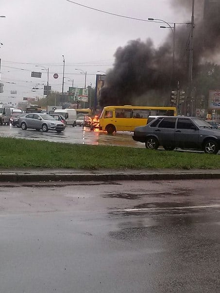В Дарницком районе Киева в пятницу, 15 апреля, посреди дороги загорелся автомобиль.