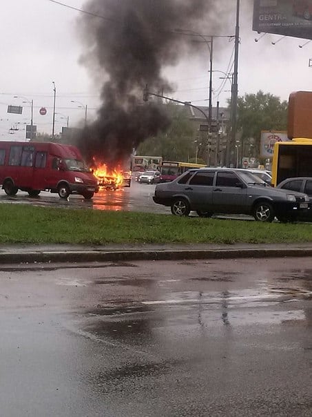 "Горит авто, Дарницкая площадь", - отмечается в комментарии к фото.