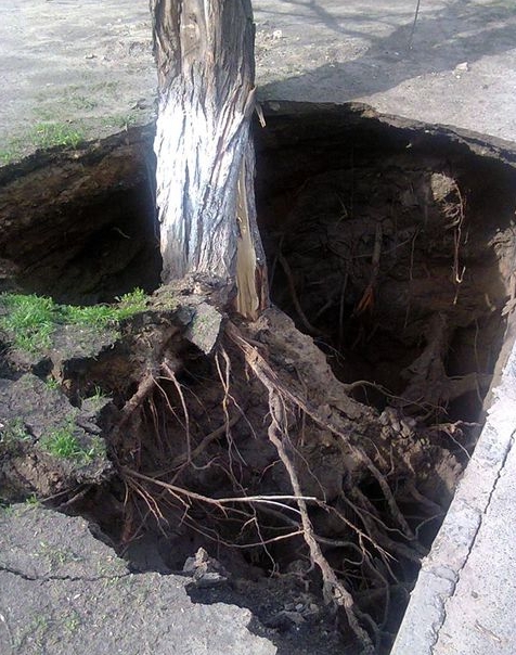 "К тому, что у нас под асфальт проваливаются автомобили, мы уже почти привыкли. Но вот сегодня я увидел как под землю проваливается дерево. Это произошло в центре Киева на улице Багговутовской. Фотоаппарата под рукой не было, снял мобилкой, поэтому качество так себе. Но по факту, дерево провалилось вместе с корнями в яму глубиной по крайне мере метров 5-6, а может быть и больше. Стоять на краю этой ямы было не прикольно", – написал Егоров.
