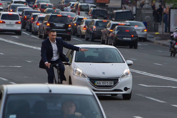 Как Кличко рассекал на велосипеде по Крещатику, и что об этом думают граждане (ФОТО)