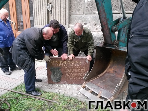 Как уже сообщал KievNews, вчера на улице Шелковичной коммунальщики с помощью трактора сорвали с фасада дома мемориальную доску коммунистического деятеля Дмитрия Мануильского.