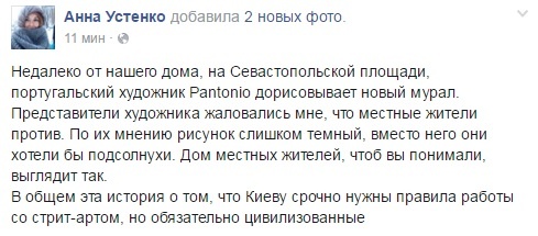 "Представители художника жаловались мне, что местные жители против. По их мнению, рисунок слишком темный, вместо него они хотели бы подсолнухи", – пишет девушка.