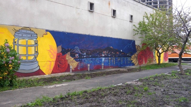На Троещине на улице Бальзака, 4 на серой стене теплового пункта появился необычный и очень яркий рисунок. За пару дней художники нарисовали на стене ярко-желтый фонарь, цветы и вид на правый берег Киева: на нем изображена ночная столица в ярких огнях, отражающихся в воде, Пешеходный мост и днепровские склоны. По словам художников, работа пока не окончена, они еще работают над необычным муралом. Кстати, рисуют, используя баллончики с краской, но вчера из-за дождя и холода работы по созданию мурала не проводились.
