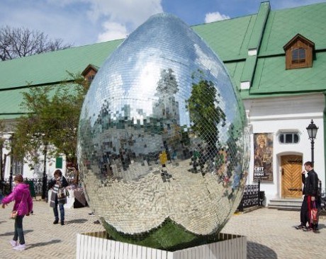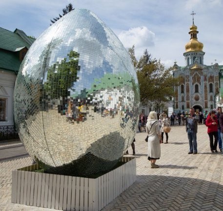 В воскресенье, 1 мая, к празднику Пасхи возле Киево-Печерской Лавры установили большую серебряную писанку.