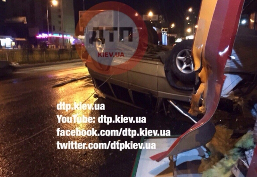 ДТП произошло ночью 2 мая, на Московской площади в Киеве. Водитель внедорожника потерял контроль над управлением, врезался в ларёк и перевернулся.