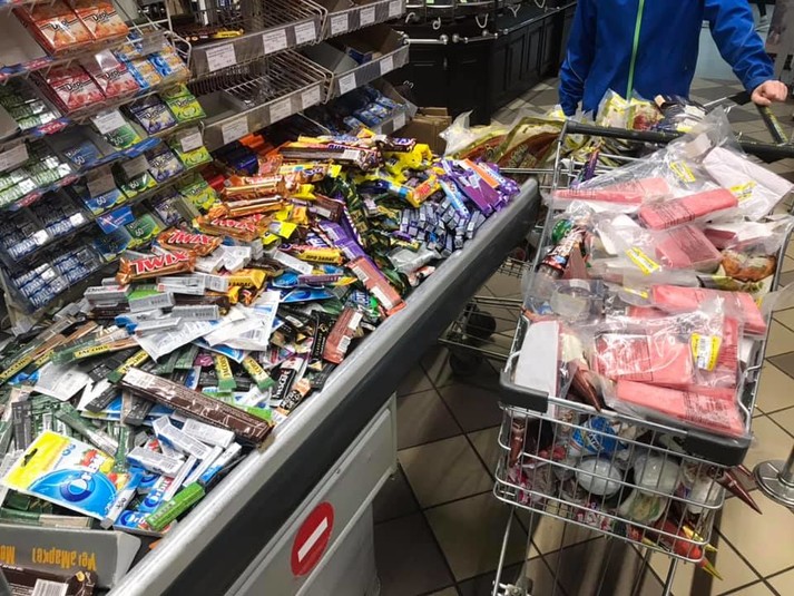 Як повідомлялося, сьогодні вранці активісти С14 заблокували всі каси «МегаМаркету» на вул. Олімпійська у Києві.