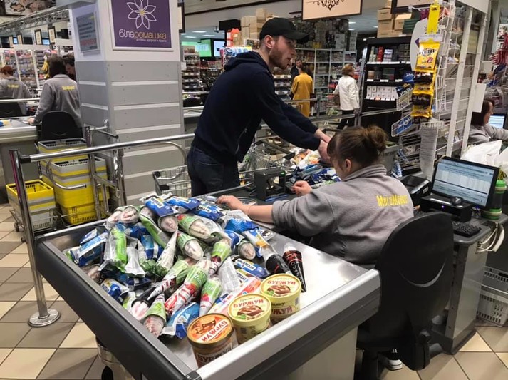 «Ахрана атмєна»: активісти заблокували каси ще одного «МегаМаркету» (фото)