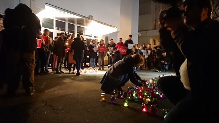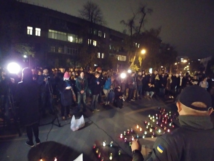 У Києві під будівлею Міністерства внутрішніх справ друзі радниці міськголови Херсона Катерини Гандзюк та небайдужі вийшли на акцію її пам’яті. Загалом під МВС вийшли понад 200 людей.