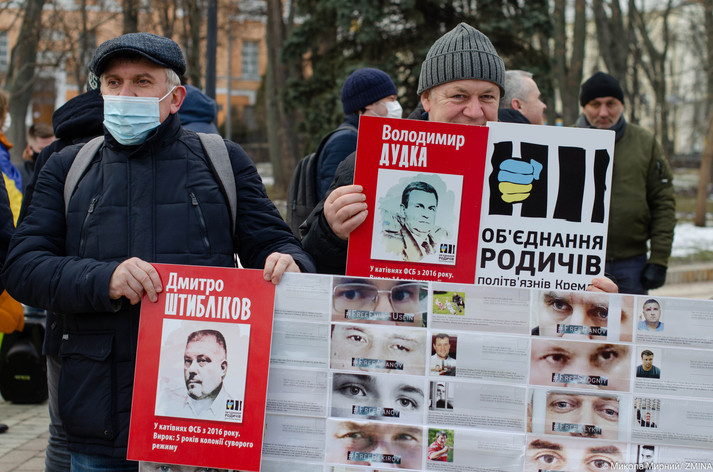 Учасники акції тримали портрети бранців Кремля та транспаранти з написами «Крим – це Україна», «Ми з вами! Крим – Україна», «Ні – окупації Криму» тощо.