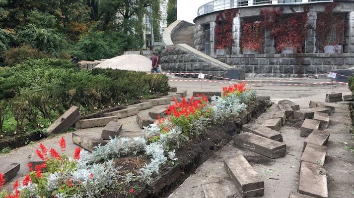 Як повідомляє «Хмарочос», роботи почалися у серпні. Спершу демонтували старе покриття доріжок. Також повністю оновили бордюри квітників.