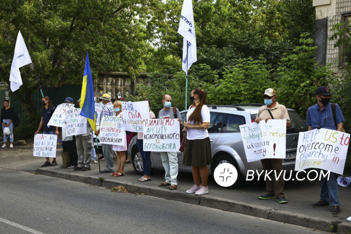У Києві біля посольства Сполучених Штатів відбулася акція за екстрадицію до США олігарха Ігоря Коломойського, якому інкримінують розкрадання та відмивання мільярдів доларів Приватбанку.