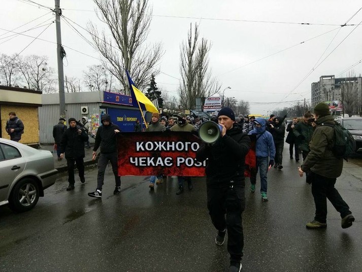 Активісти пройшли маршем під назвою «Тітушок за грати» до суду у Дарницькому районі столиці.