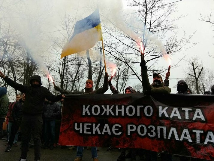 Попереду несли плакат з написом «Кожного ката чекає розплата».