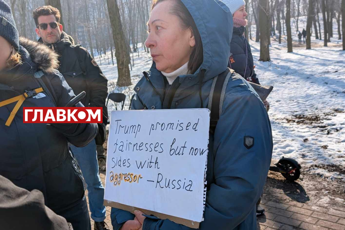 Кияни, які прийшли на акцію, звертаються до нової американської адміністрації з вимогою не здавати Україну