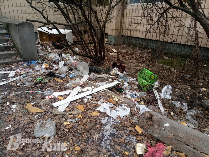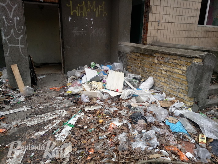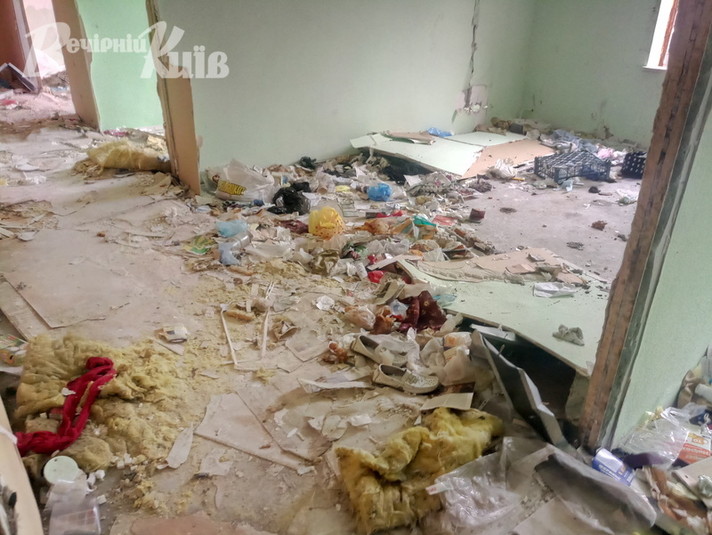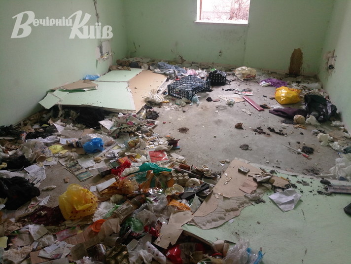 Покинутий дитячий садочок на Повітрофлотському проспекті, 40-а у Соломянському районі Києва перетворився на стихійне звалище сміття. Лише дитячі іграшки, які іноді зустрічаються в напівзруйнованих кімнатах, нагадують, що колись це було затишне місце.