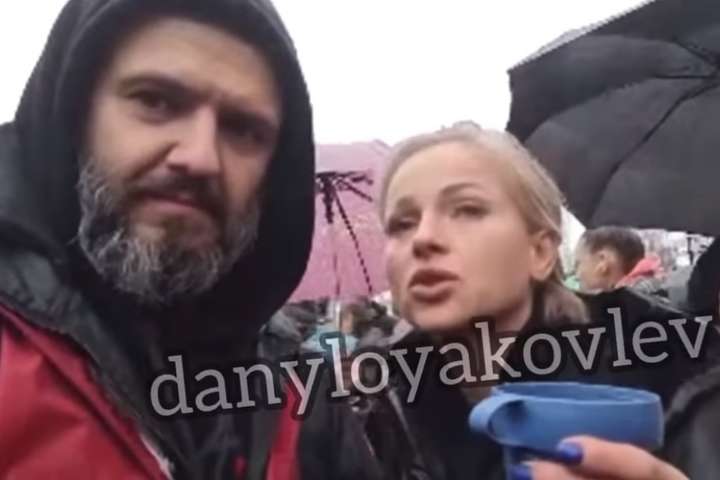 У мітингу антивакцинаторів у Києві взяли участь блогерка, керівник організації STOP Fake Pandemic Олена Фаіст і Олександр Надьожа, які називають українців та росіян «братами-слов’янами».