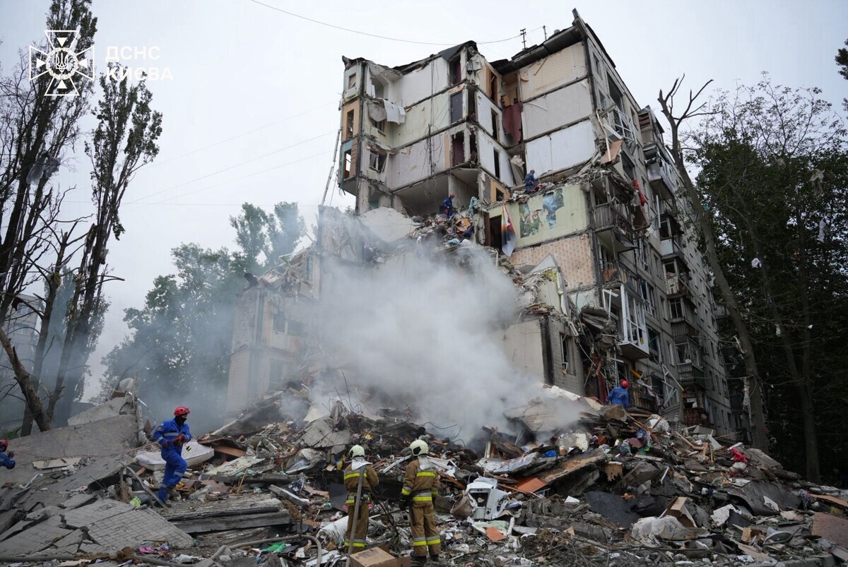 За даними ДСНС, протягом ночі та вранці рятувальники дістали з-під завалів житлового будинку у Святошинському районі 10 тіл загиблих, серед яких дитина двох років. Таким чином кількість жертв російського удару по столиці в ніч на 31 липня зросла до 26 осіб, з яких троє – діти.