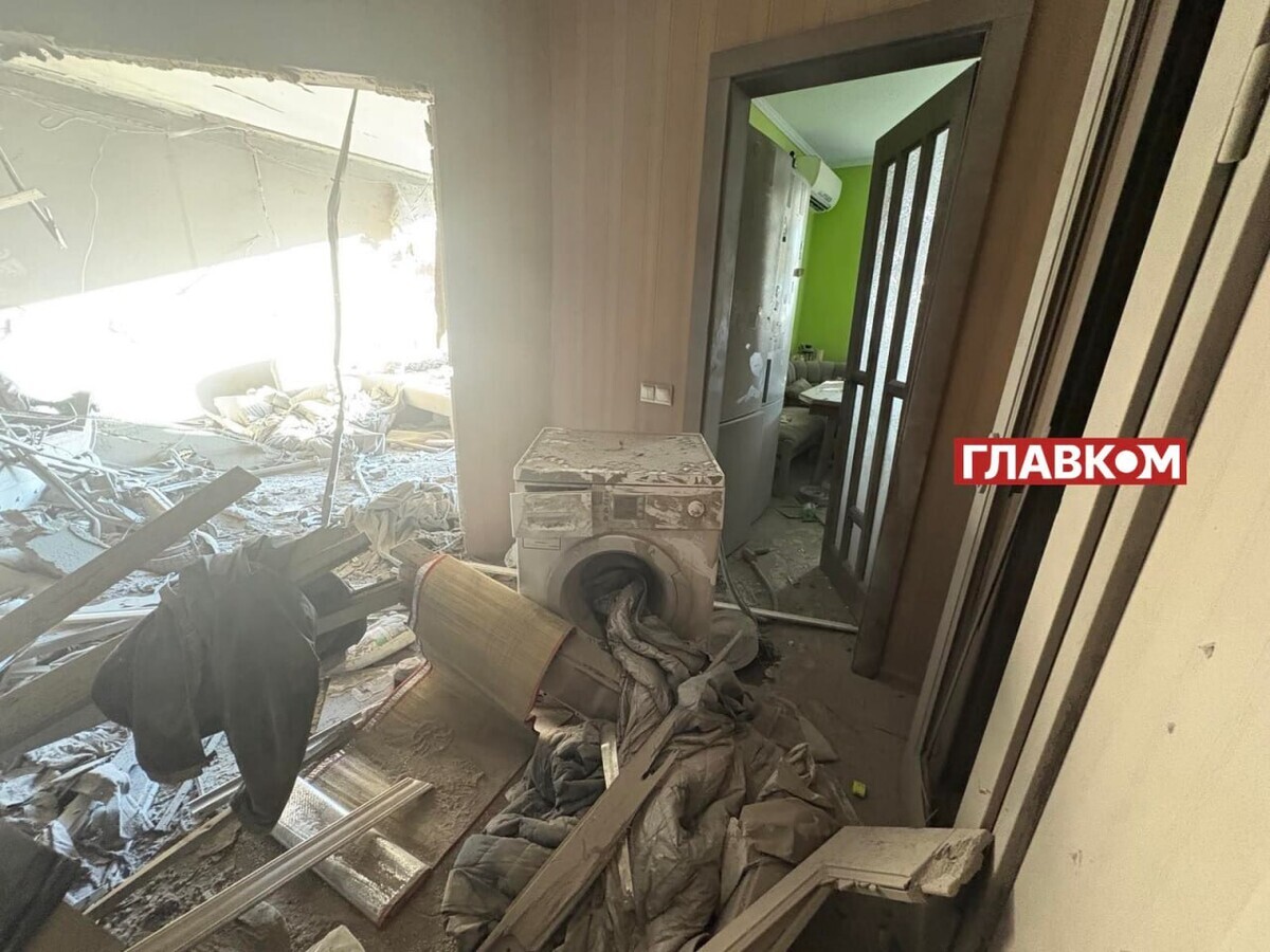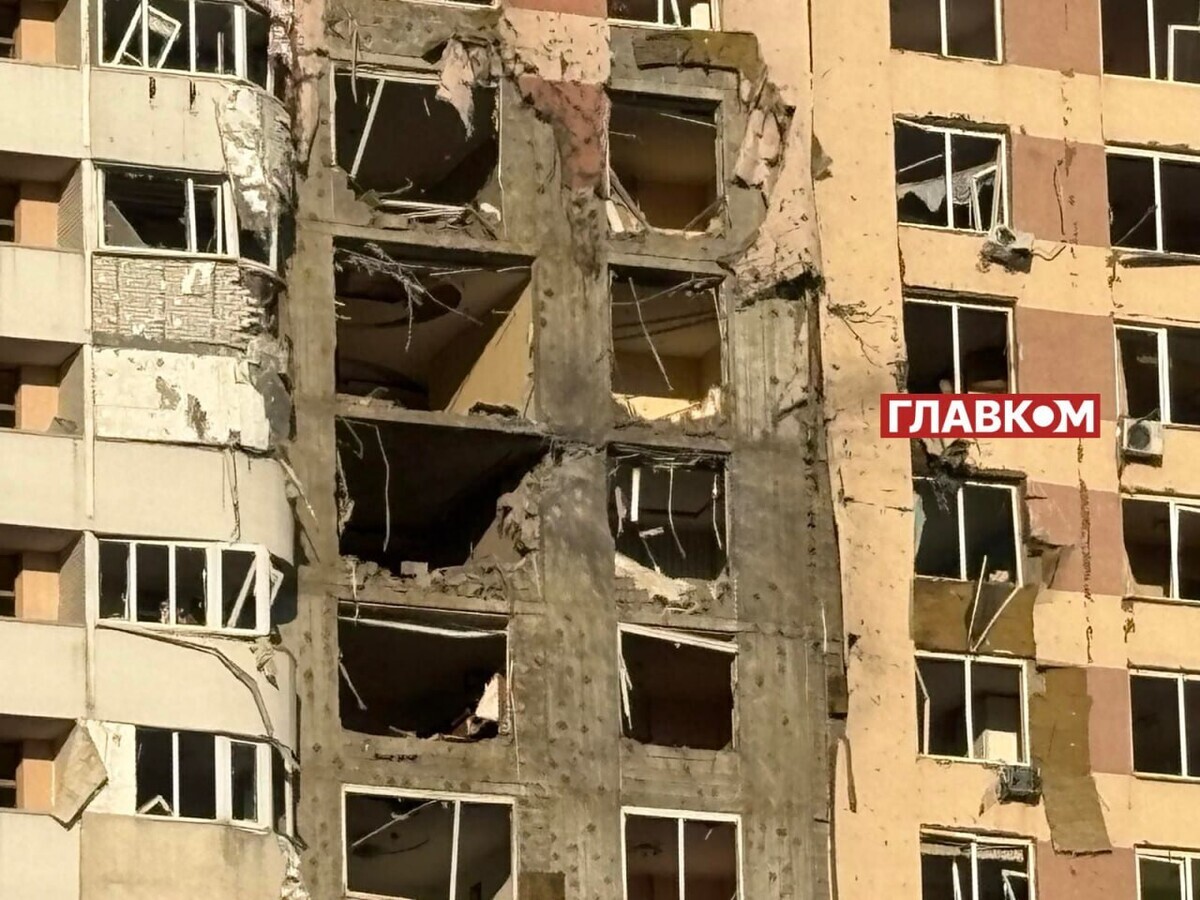 Будинок, в який сьогодні влучив «шахед» у Дарницькому районі, отримав значні пошкодження.
